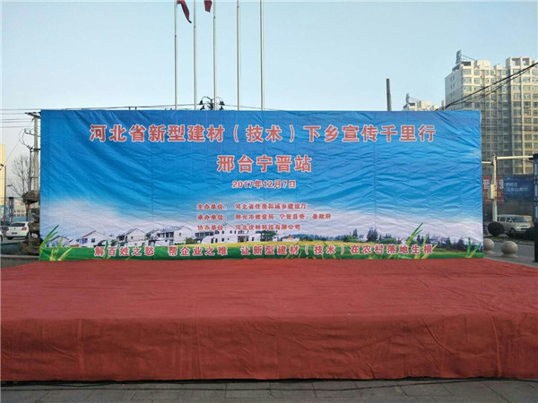 2017年12月7日,邢臺(tái)市泓升建材節(jié)能有限公司攜手建設(shè)廳于寧晉站一起舉行下鄉(xiāng)宣傳活動(dòng)!其宗旨:解百姓之憂,幫企業(yè)之難,讓新型建材在農(nóng)村落地生根!